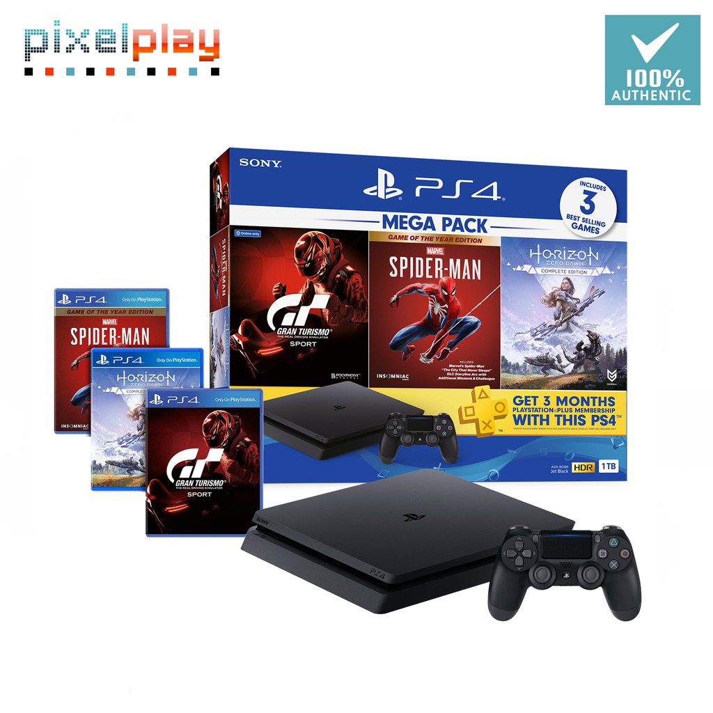 PS4 Console 1TB Jet Black R3 Mega Pack Gran Turismo Sport