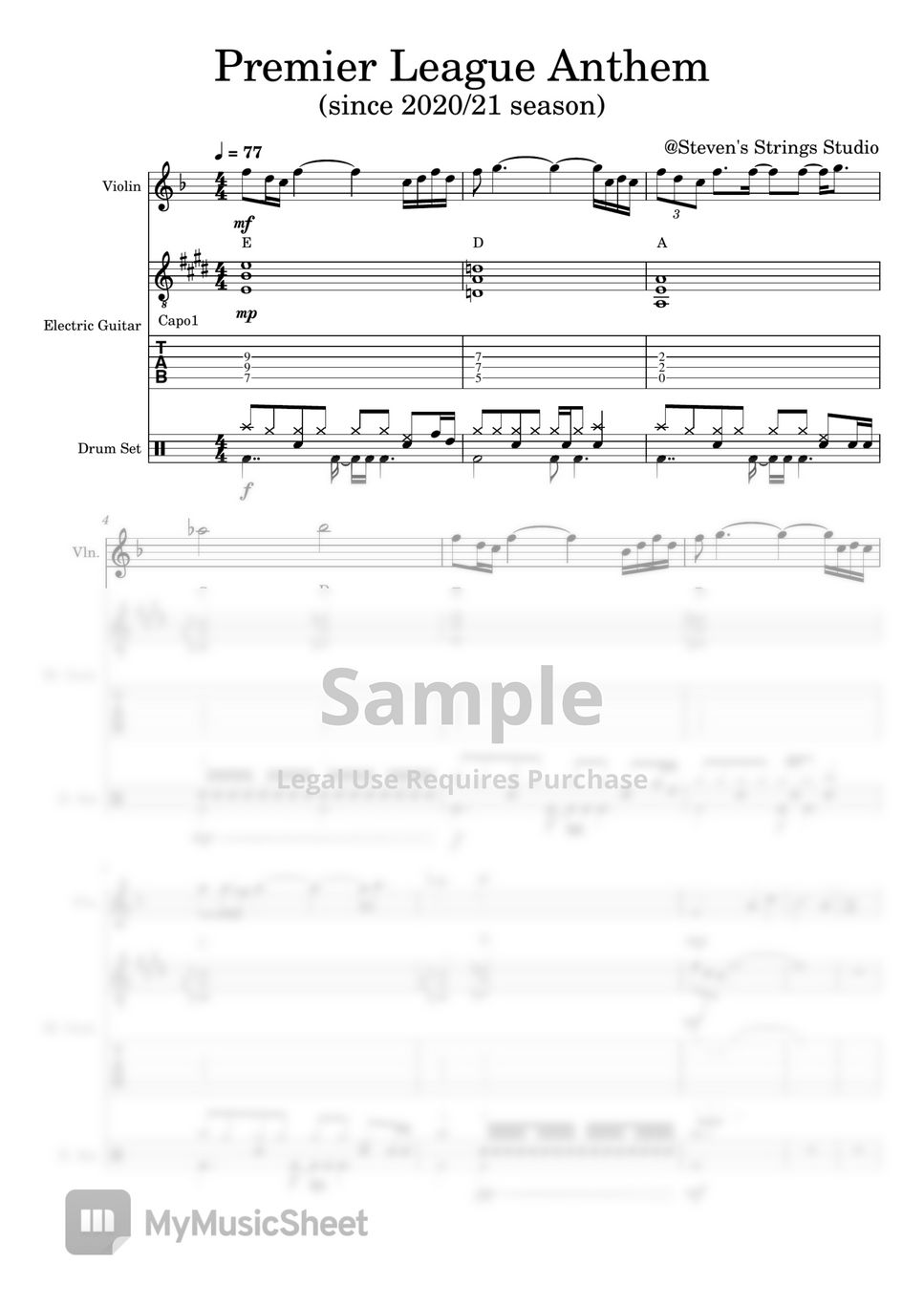 Epl tab hot sale, David Connolly Premier League Anthem Violin Guitar Duet Drum by Steven s Strings Studio hot sale