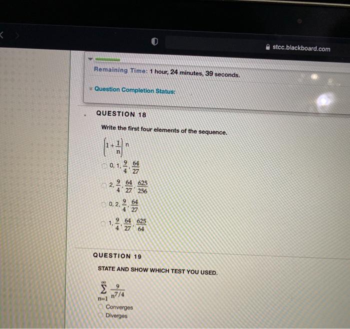 Solved stcc.blackboard Remaining Time 1 hour 24 Chegg