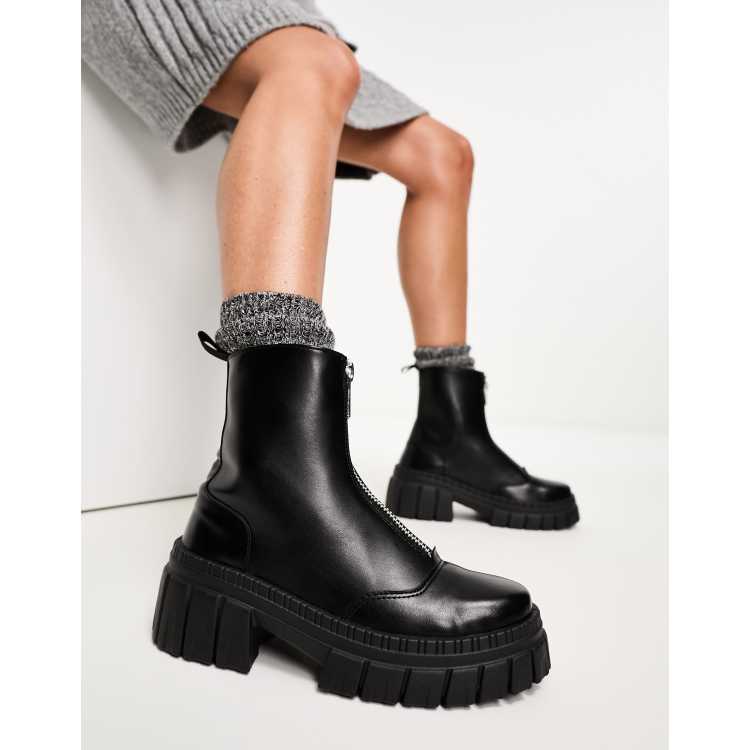ASOS DESIGN Alliance chunky zip front boots in black ASOS