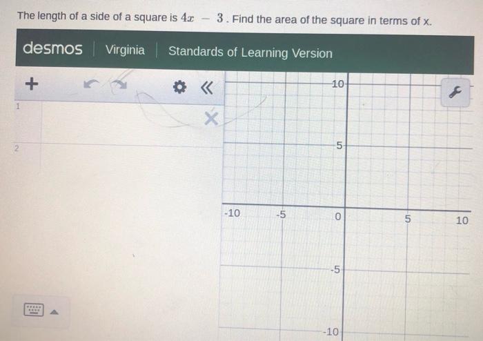 Solved The length of a side of a square is 4x desmos Chegg