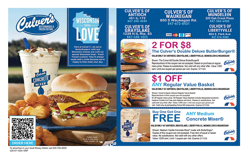 Culver s 2023 Coupon Promo Waukegan IL Money Mailer