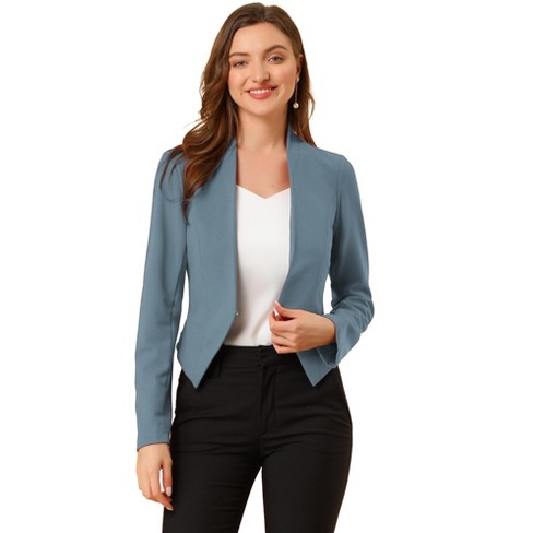 Allegra K Women s Collarless Work Office Long Sleeve Cropped Blazers Grey Blue Small