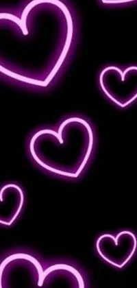 Purple Hearts on Black Live Wallpaper