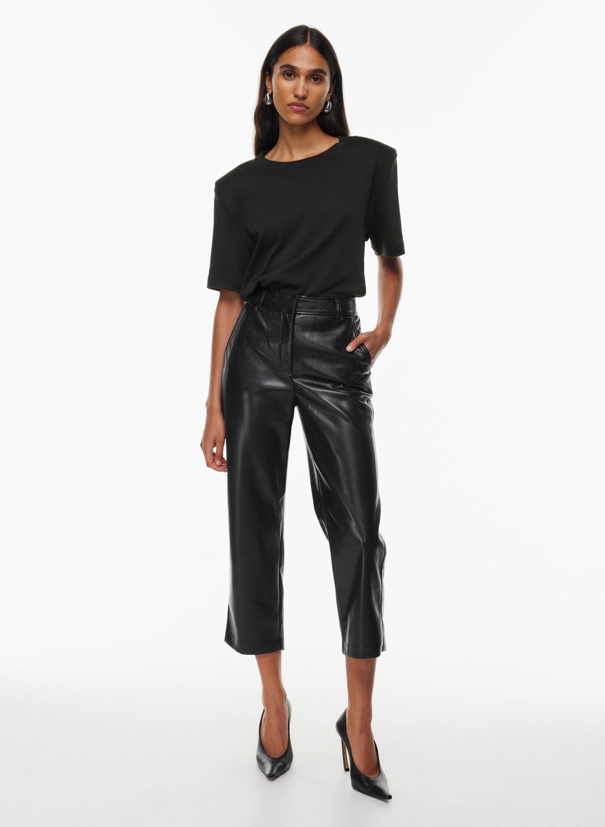 - faux leather cropped pants
