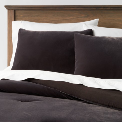 Full queen Lustrous Velvet Comforter Sham Set Black Threshold