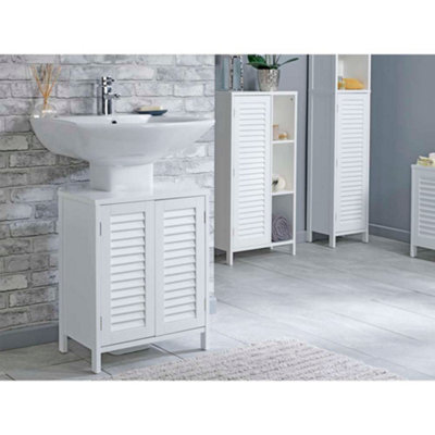 Louvre Style Under Basin Bathroom Sink Cabinet in White