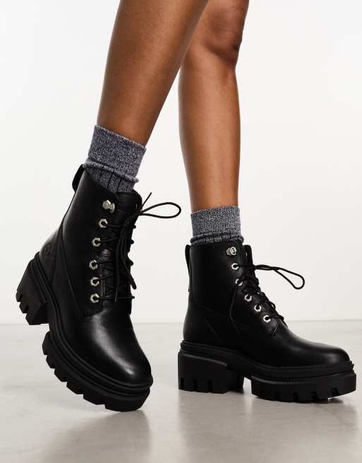 Timberland Everleigh 6 inch hoge veterlaarzen van volnerf leer met dikke zool in zwart