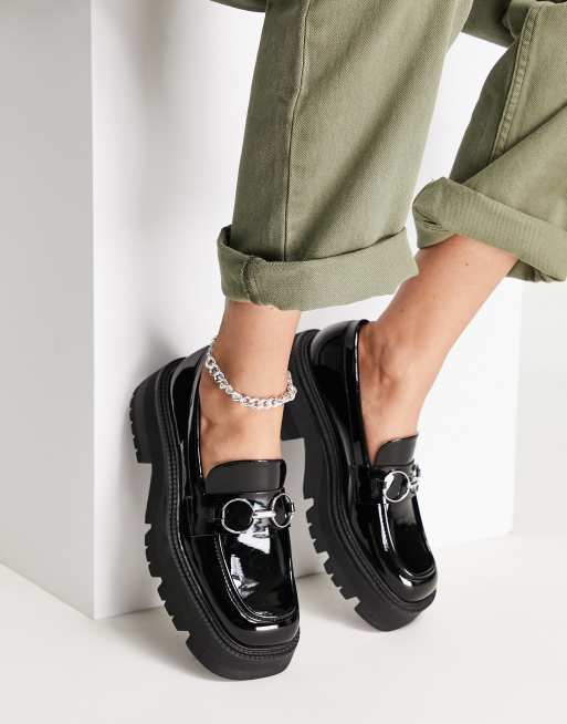 Platform brogues hot sale, Bershka chunky platform patent brogues in black ASOS hot sale