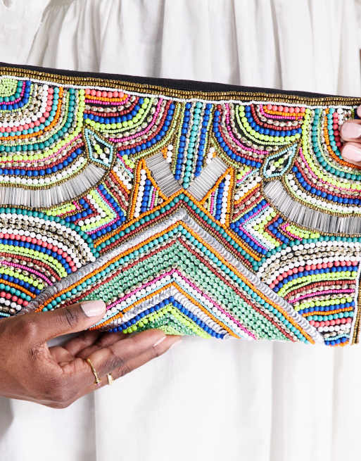 ASOS DESIGN bright beaded clutch bag in multi ASOS