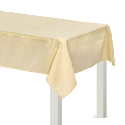 Metallic Vanilla Cream Fabric Tablecloth Size 60 x 104 Party