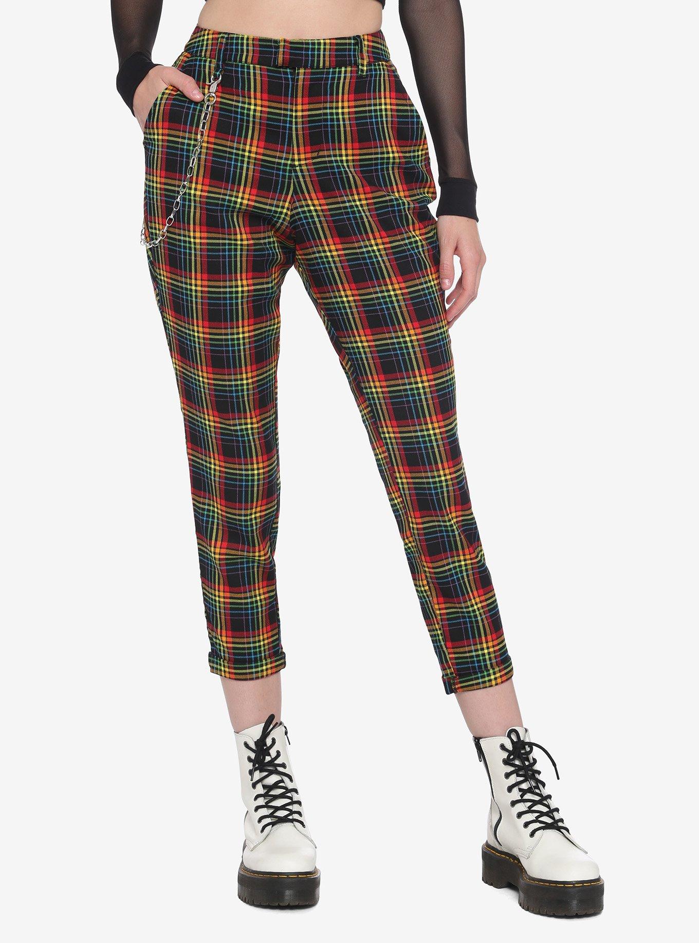 Rainbow Plaid Pants With Detachable Chain Hot Topic