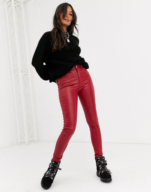 ASOS DESIGN high rise ridley skinny jeans in red coated ASOS