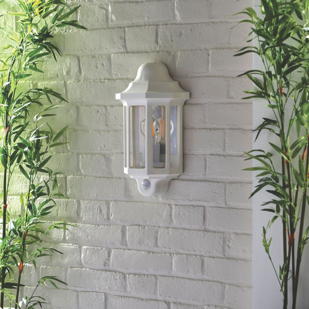 LAP Outdoor Half Lantern Wall Light With PIR Sensor White Screwfix