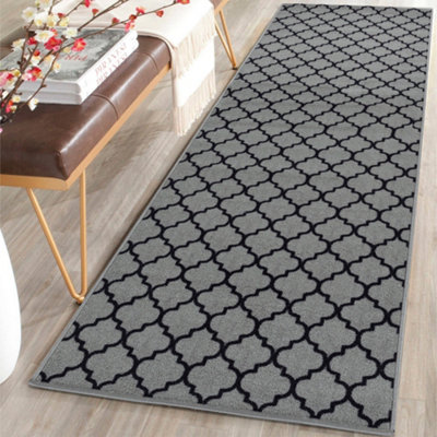 Smart Living Heavy Duty Machine Washable Runner for Hallway Kitchen Non Slip Floor Mats Door Mat 80cm x 150cm Grey Black