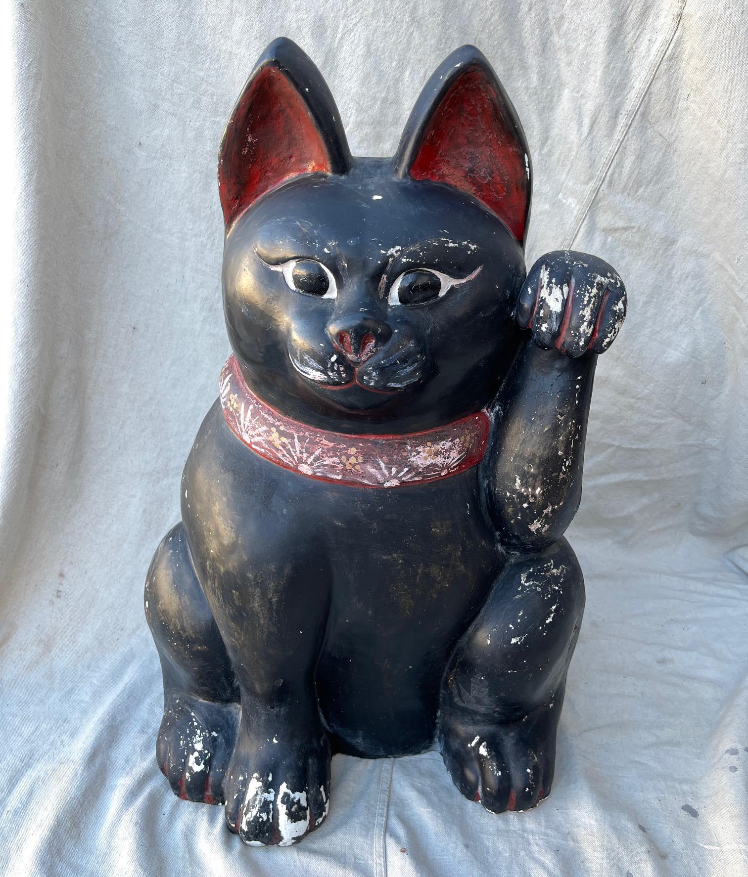 Clay Japanese 25.5in Black Maneki Neko Cat Chairish