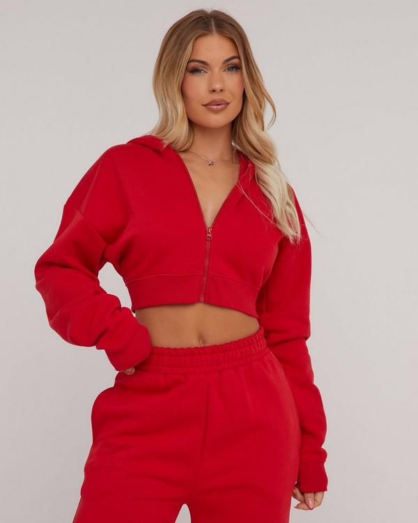 Red crop hot sale hoodie, CROP HOODIE TOP JOGGERS LOUNGEWEAR SET RED hot sale