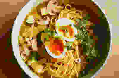 Sesame Instant Ramen Noodles with Broccoli Soft Boiled Egg