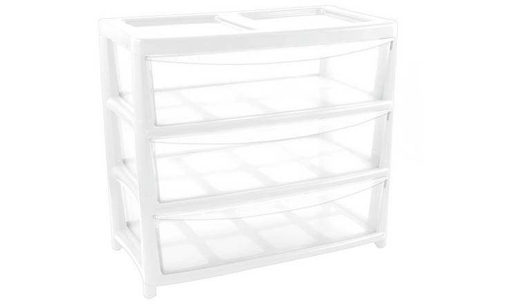 Buy Argos Home 3 Drawer Extra Wide Gloss Plastic Drawers White Plastic storage boxes and drawers Argos