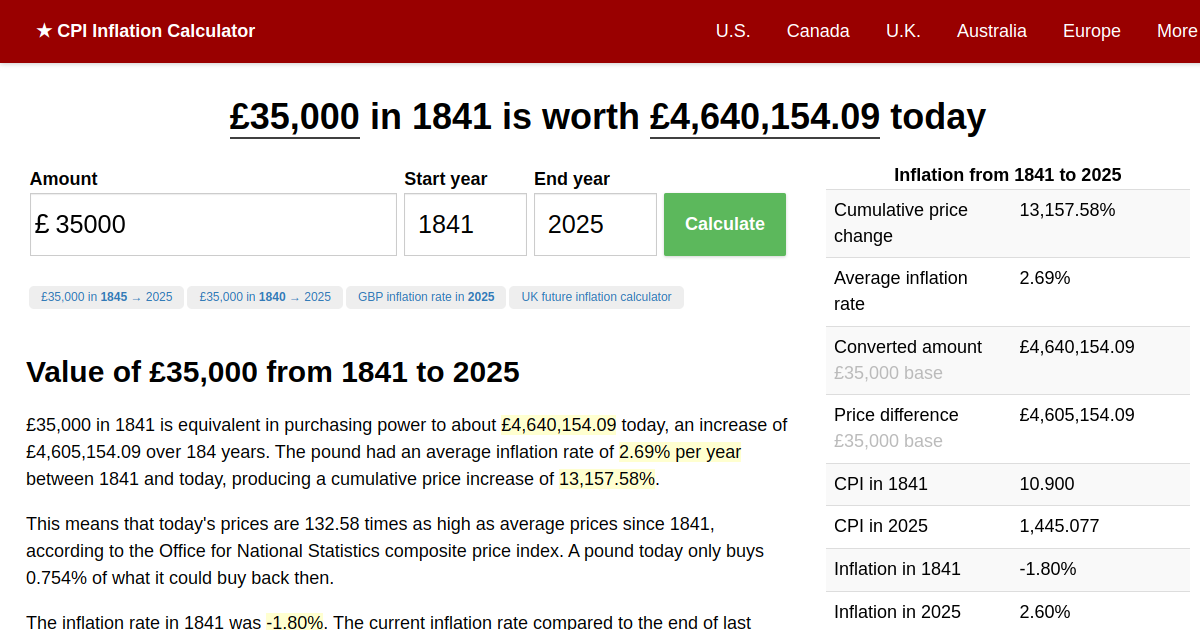 35 000 in 1841 2024 UK Inflation Calculator
