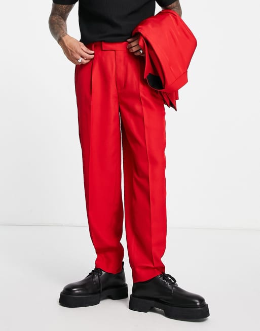 ASOS DESIGN oversized tapered suit trousers in electric red