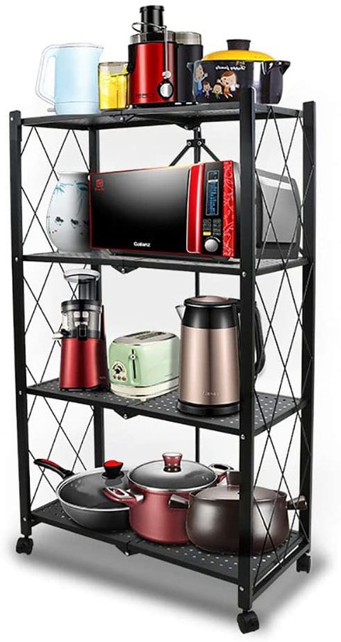 Carbon Steel Kitchen Shelf Floor Standing Multi Layer Foldable
