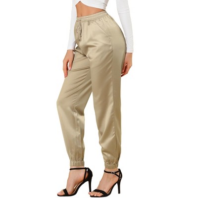 Allegra K Women s Drawstring Elastic Waist Ankle Length Satin