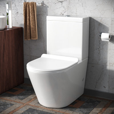 Nes Home Contemporary Round Rimless Close Coupled Toilet With Soft