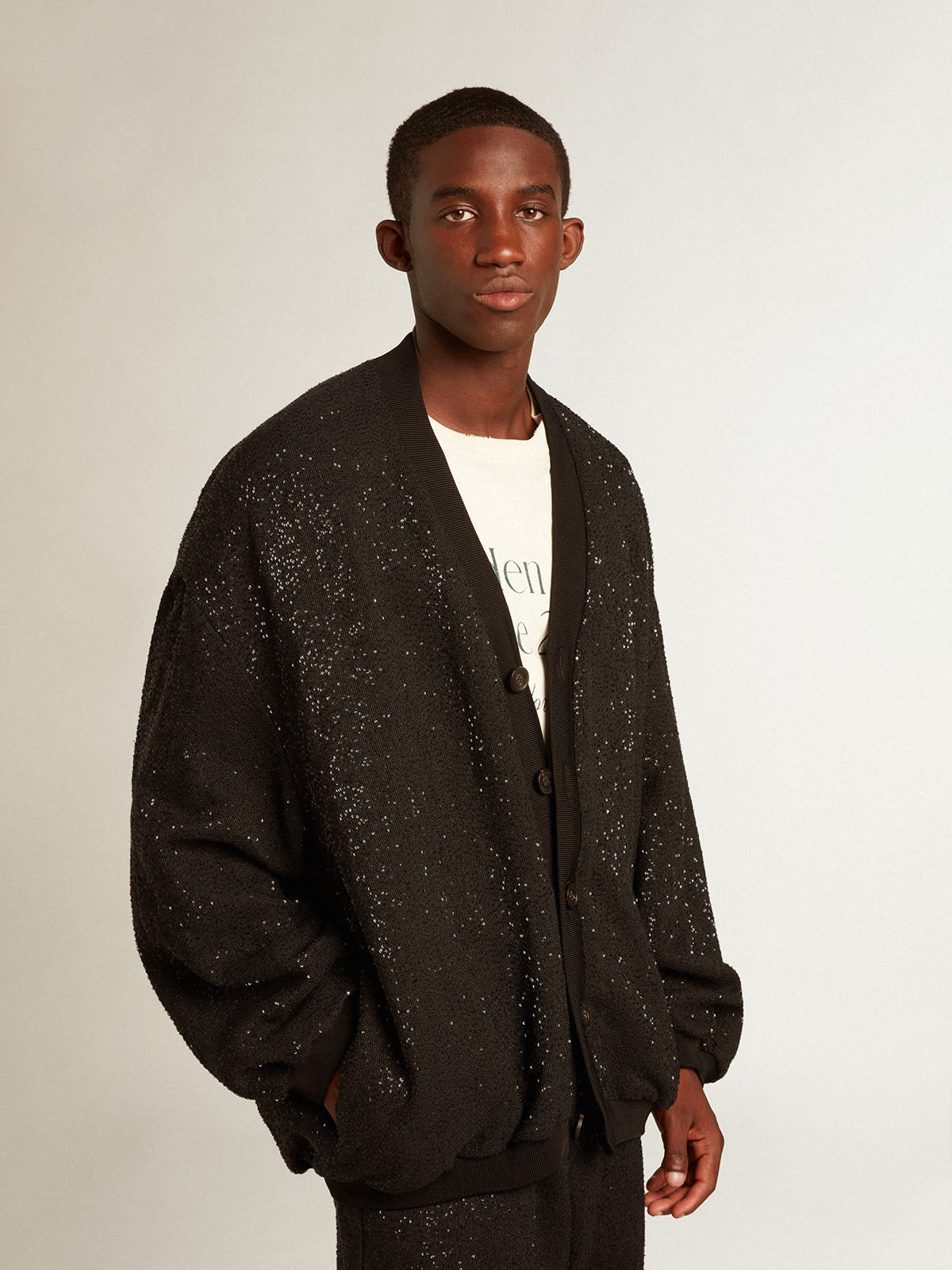 Men s black sequined cardigan jacket Golden Goose