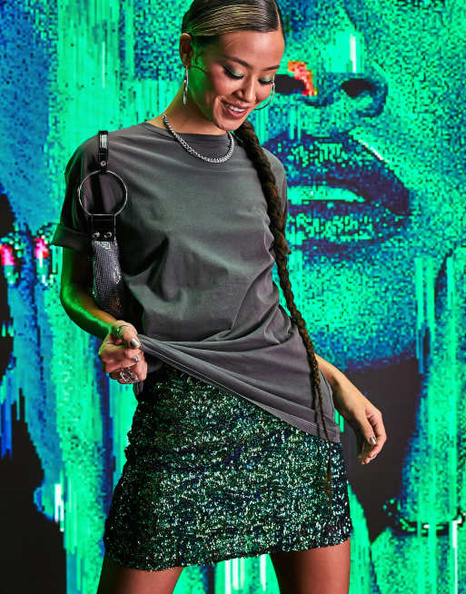 Sequin skirt hot sale green, Sequin Mini Skirt hot sale