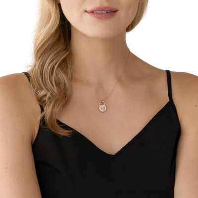 Michael kors rose hot sale gold pendant necklace, MICHAEL KORS BRILLIANCE PAVE ROSE GOLD PENDANT NECKLACE MKJ3909791 hot sale