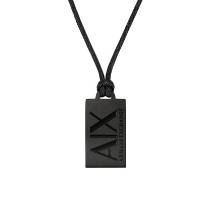 Armani Exchange Black Stainless Steel Dog Tag Necklace