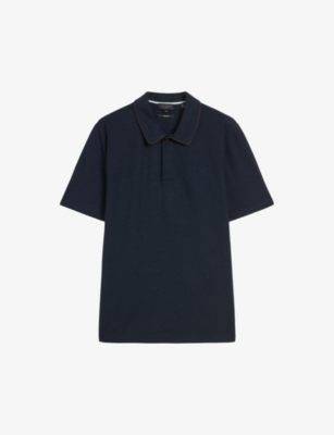 TED BAKER Aroue suedette trim woven polo shirt Selfridges