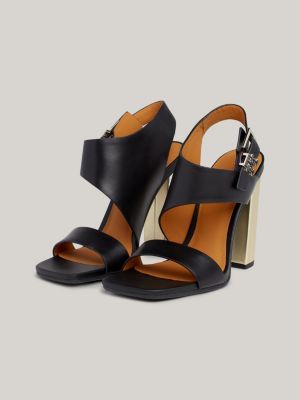 Tommy Hilfiger Black Block Heel Sandals Gold Black block heel