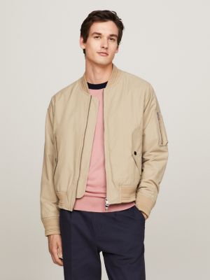 Button Pocket Regular Fit Bomber Jacket Beige Tommy Hilfiger