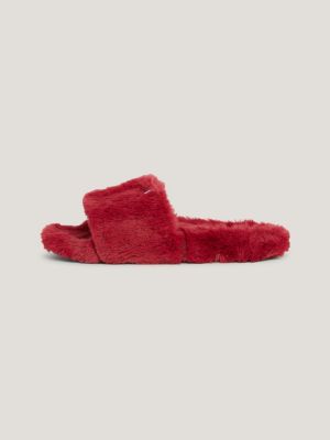 Faux Fur Slipper Slides Red Tommy Hilfiger