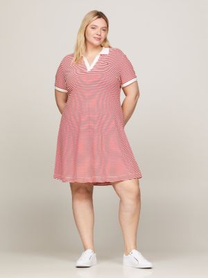 Curve Stripe Open Placket Polo Dress Red Tommy Hilfiger