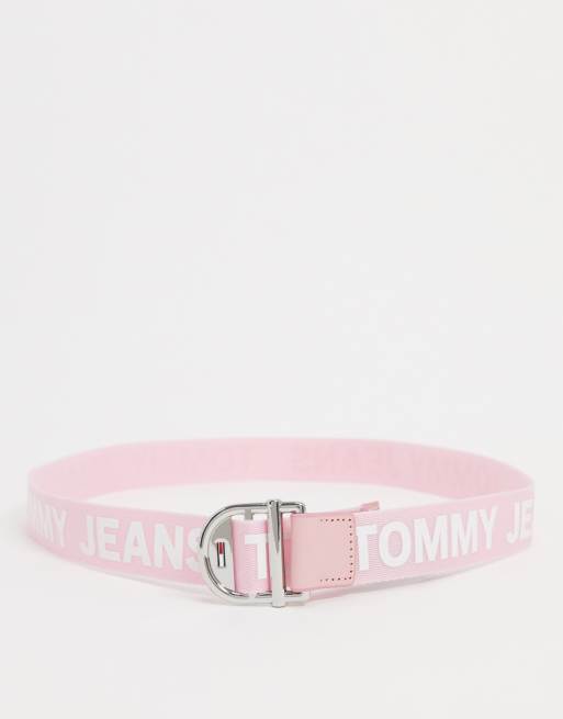 Tommy Jeans logo tape belt in pink