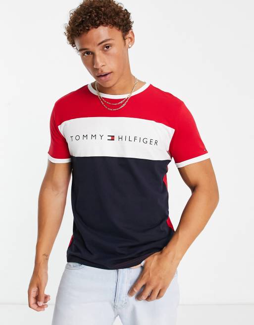 Tommy hilfiger t hot sale shirt red white, Tommy Hilfiger loungewear colour block t shirt in navy and red hot sale