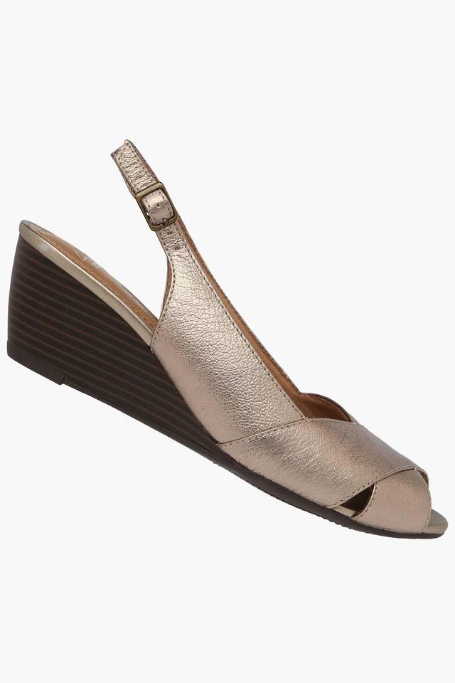 Buy CLARKS Gold Womens Ethnic Ankle Buckle Closure Wedge Sandals