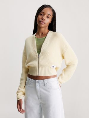 Calvin klein hot sale cropped cardigan, Relaxed Ribbed Cotton Cardigan Calvin Klein J20J222623ZCY hot sale
