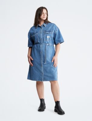 Plus Size Utility Denim Shirt Dress Calvin Klein USA