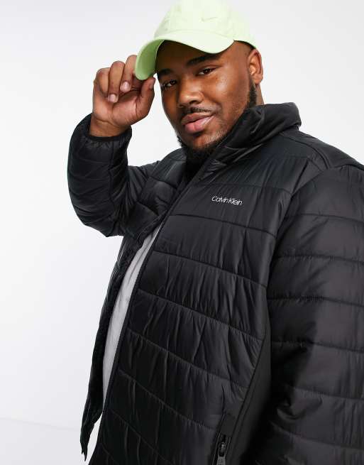 Calvin klein hot sale logo puffer jacket, Calvin Klein Big Tall essential side logo puffer jacket in black hot sale