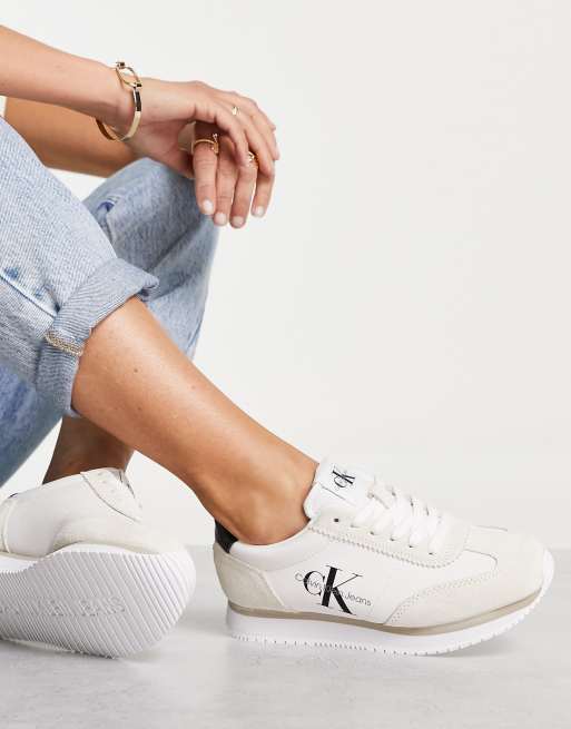 Calvin Klein Jeans retro runner sneakers in ecru