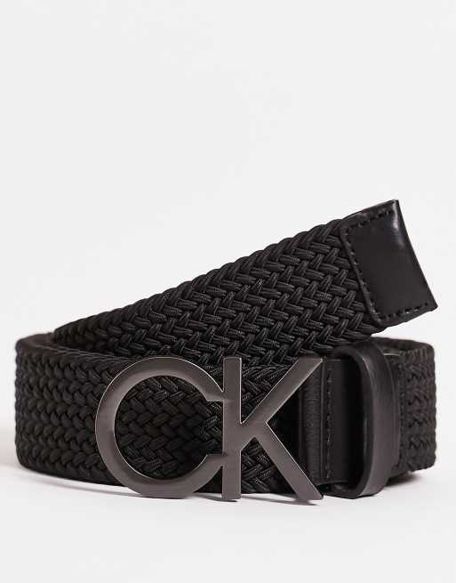 Ck black hot sale belt, Calvin Klein braided belt with metal logo in black hot sale