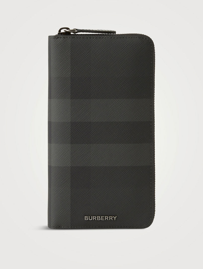 BURBERRY Charcoal Check And Leather Ziparound Wallet Holt Renfrew