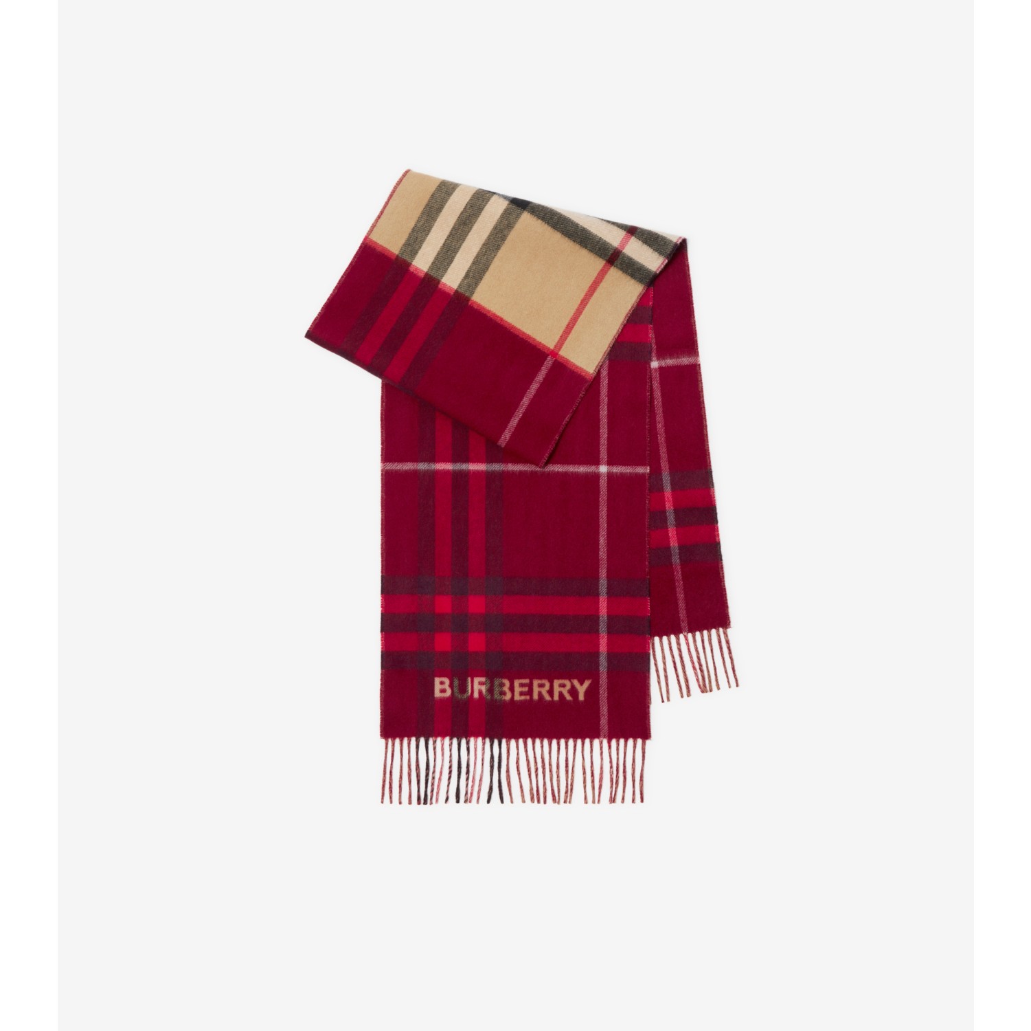 Burberry scarf hot sale red plaid, Contrast Check Cashmere Scarf in Archive beige ripple Burberry hot sale