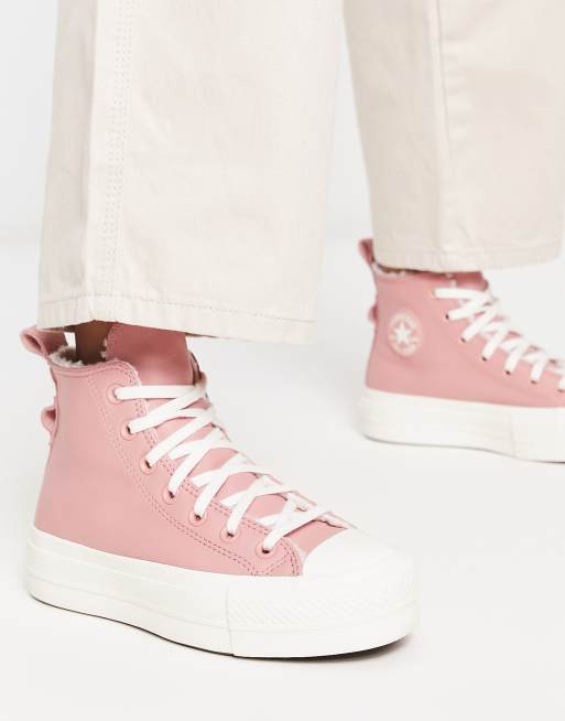 Converse Lift Hi leather sneakers with borg lining in pink PINK