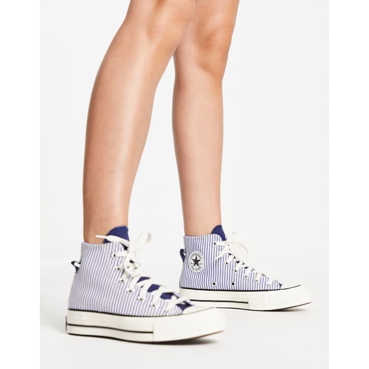 Converse Chuck Taylor 70 Hi stripe trainers in blue and white