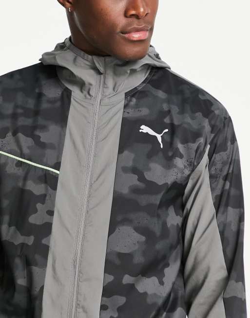 Puma Running hooded jacket in camo print grey